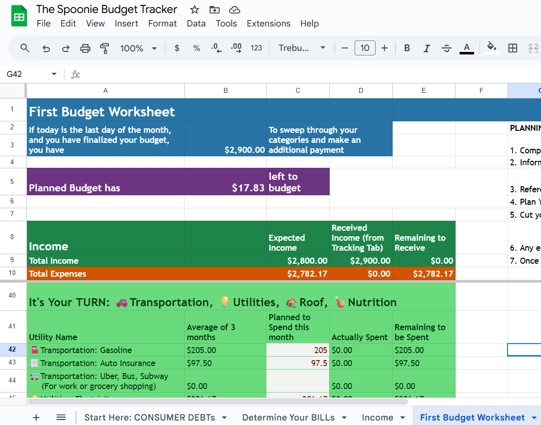 1. The FREE Spoonie’s Budget Tracker walks you step by step into creating your budget without overwhelm